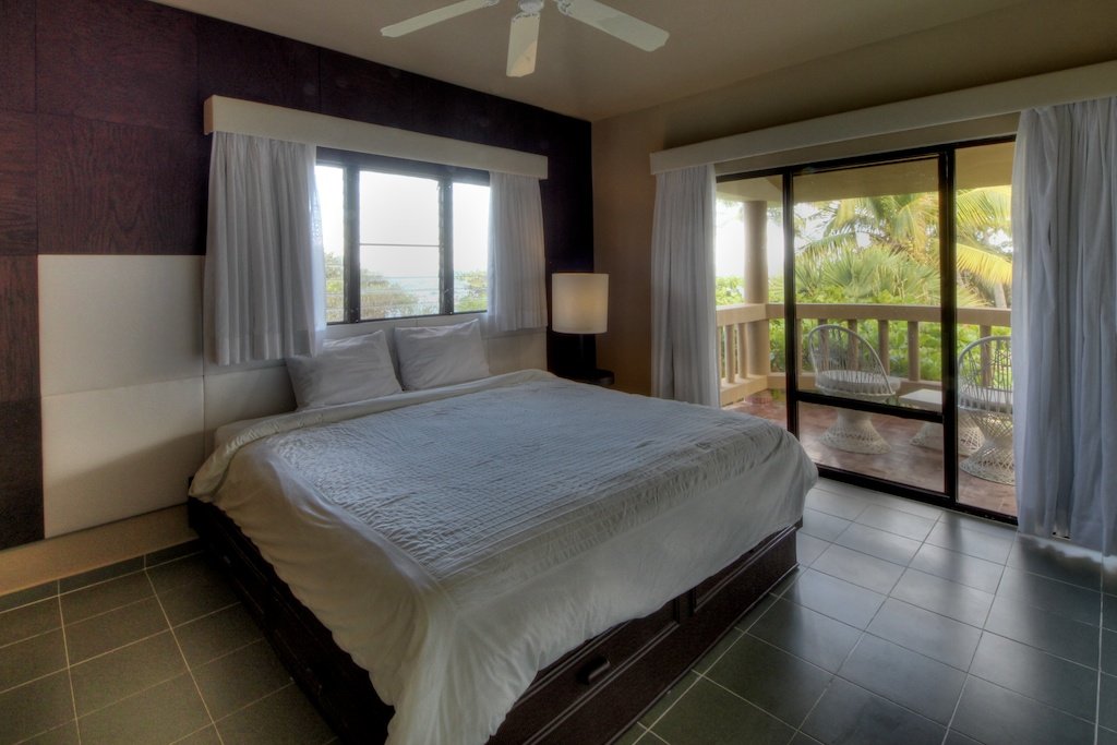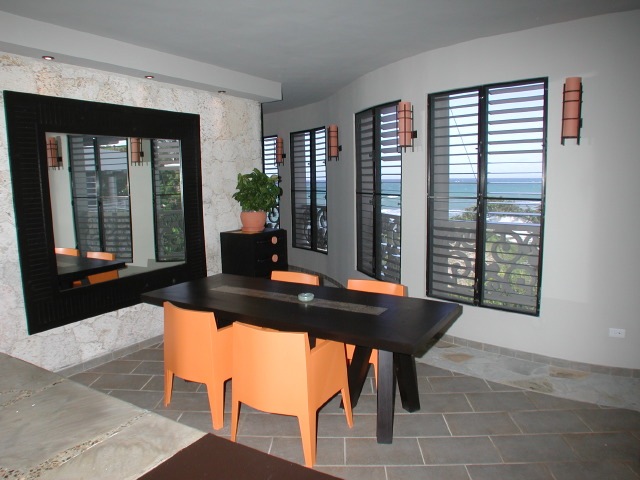 - Unidad en la Secunda planta: Puertas de cristal hacia un balcón de 30 metros alrededor de la unidad, con vista a la piscina, el jardín y el mar