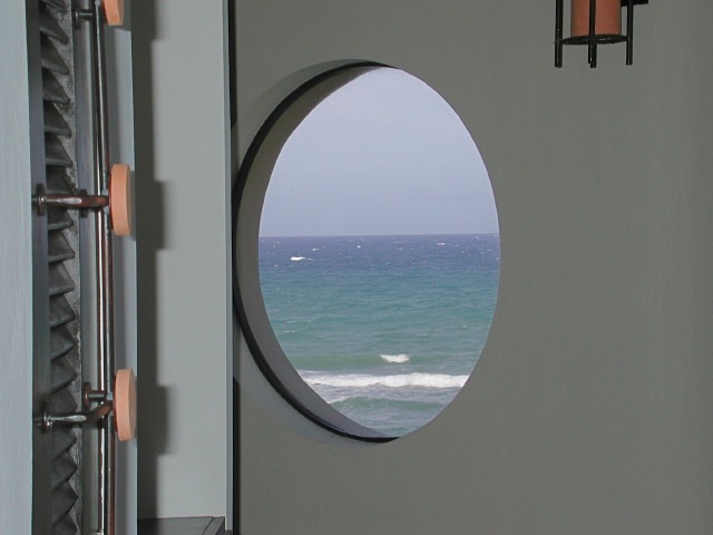 - Las puertas de cristal hacia a los balcones con vistas al mar