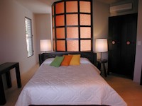 - Dormitorio con cama "Queen", cuarto de baño y aire acondicionado